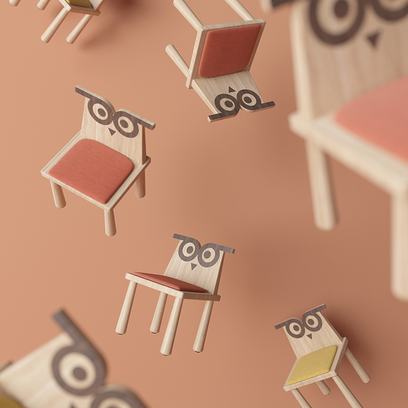 彩家居猫头鹰博士系列DRO-S1-B家用儿童简约童趣带座垫北美白蜡木