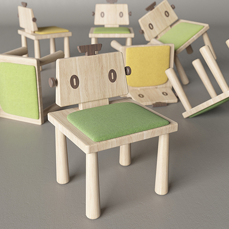 彩家居机器人部落系列ROB-S1-A机器人1号家用儿童创意座椅北美白蜡木
