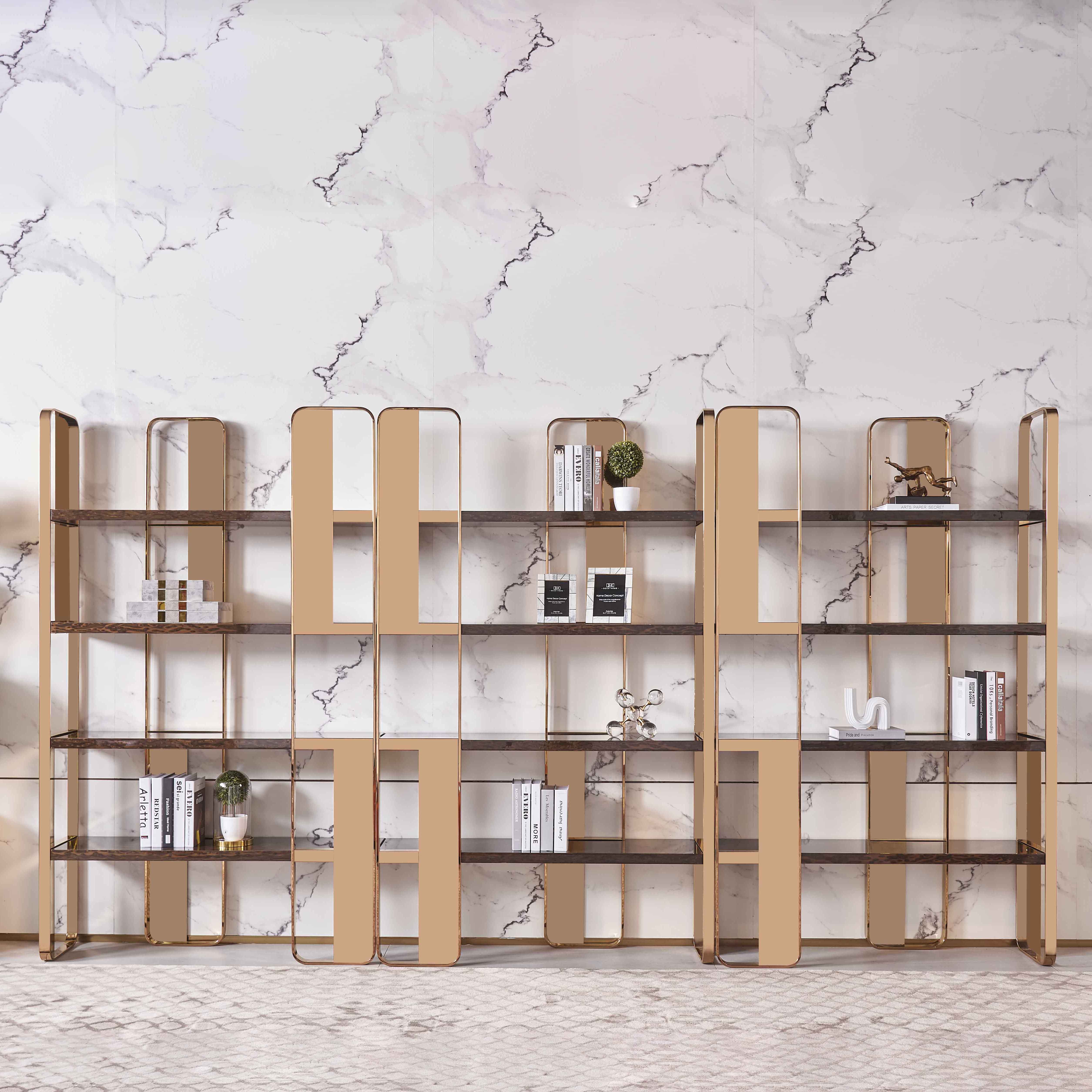萃集SJ141装饰架玫瑰金+米色书架置物架置酒架现代轻奢风格架子