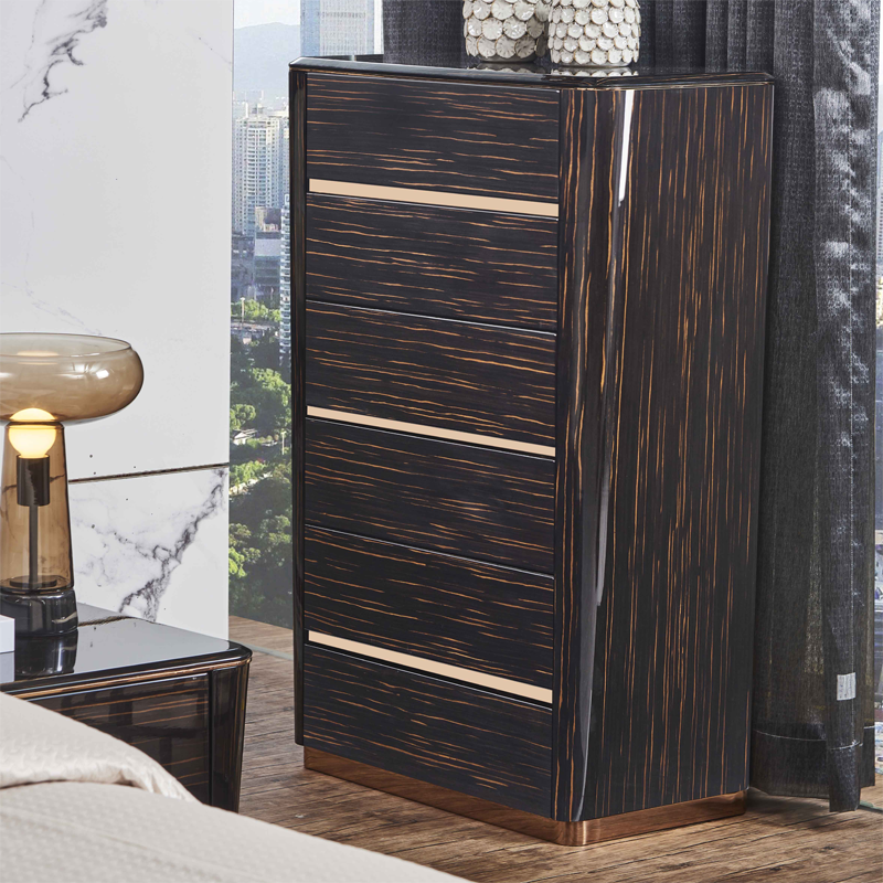 萃集FWG154五斗柜深咖啡色木柜置物柜现代轻奢风格柜子实木