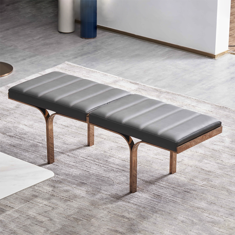 萃集FJD157床尾榻灰色玫瑰金床尾凳现代轻奢风格躺凳